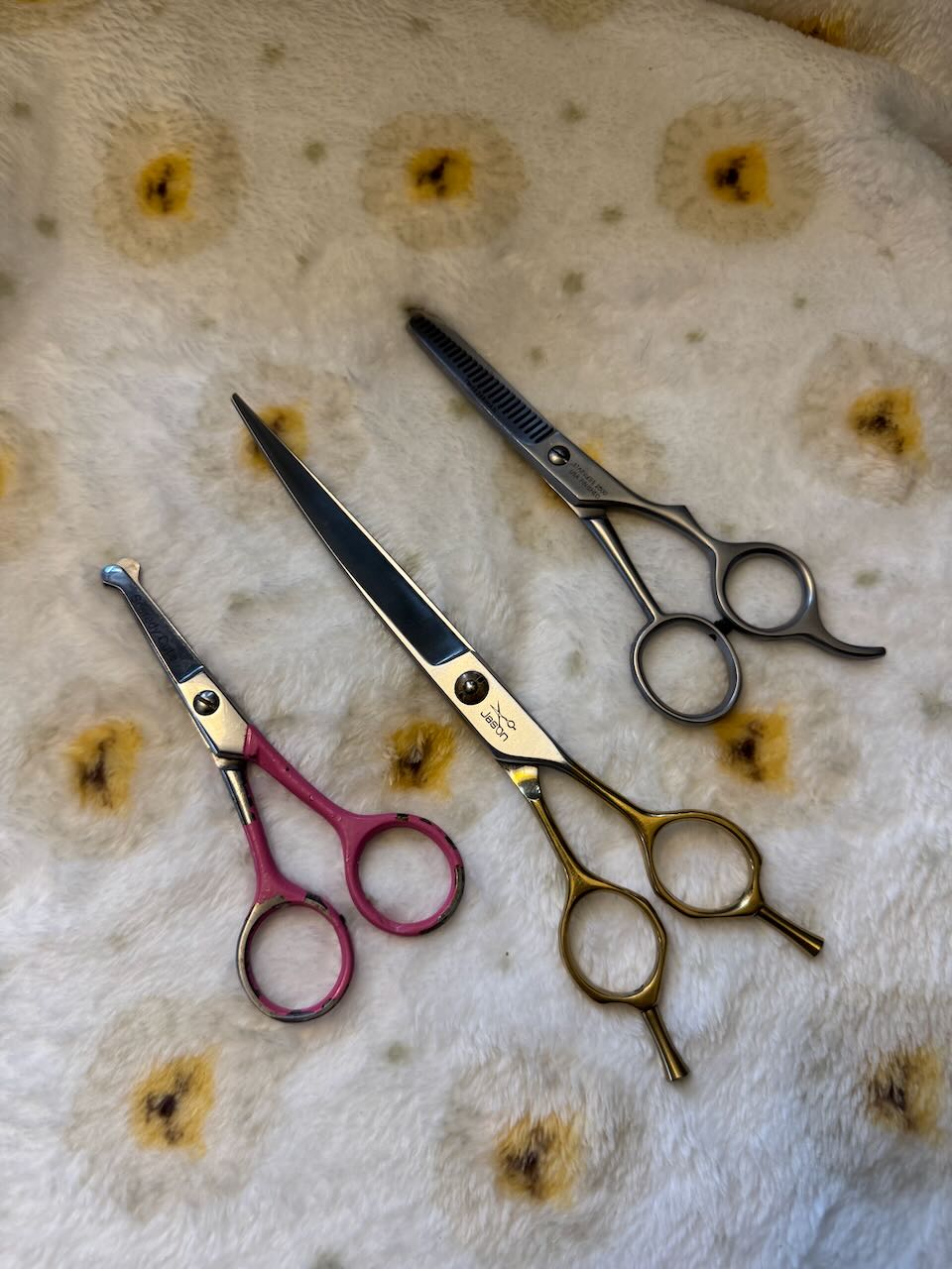 • Purpose: Scissors and thinning shears are used for precise trimming and shaping, especially around sensitive areas like the ears and paws.